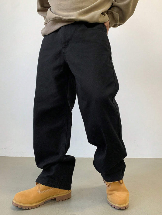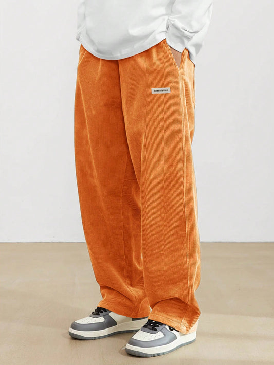 Manfinity Hypemode Loose Fit Men'S Letter Patched Detail Corduroy Pants Pants Baggy