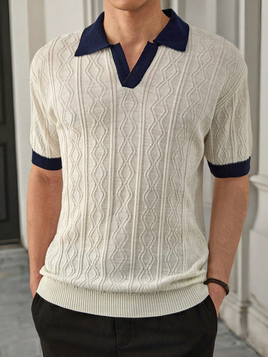 Men Geometrical Knitted Half Button Old Money Regular Polo Shirt